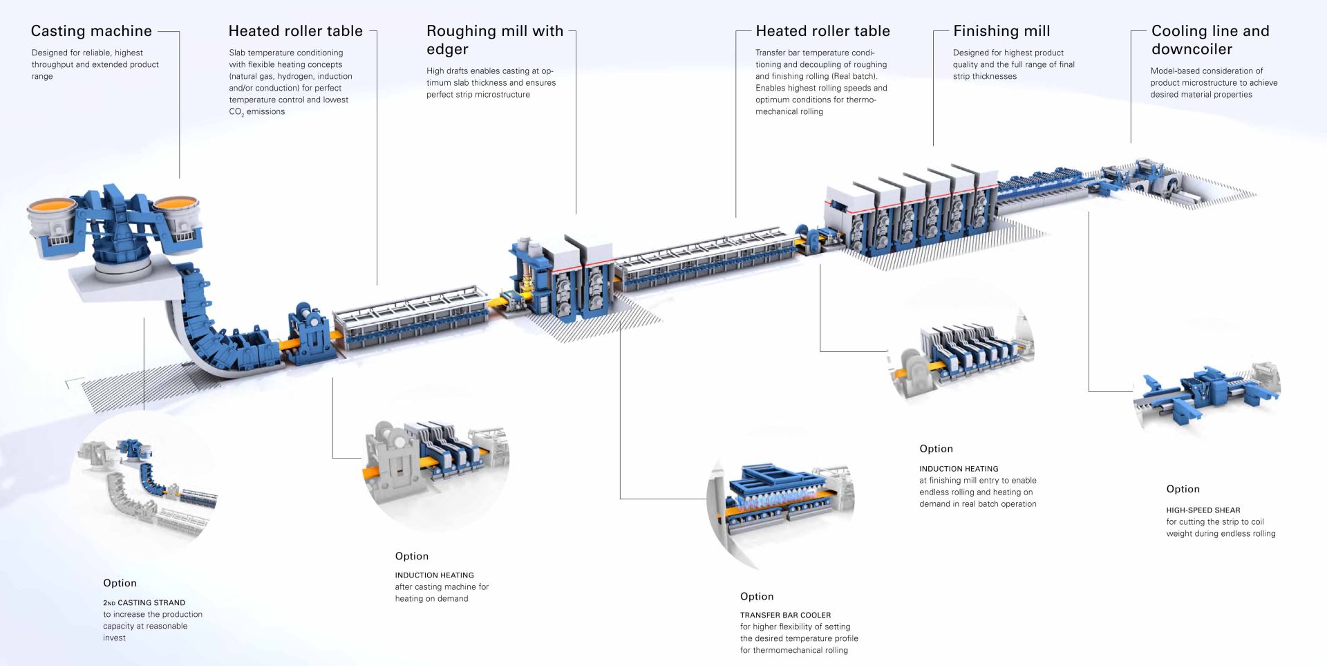 If you want to grow with the market, CSP is the perfect solution for you. Starting with a single-strand CSP plant, you can cost-effectively produce around 1.5 million tons hot strip per year. Later, simply add a second casting strand to double your capacity to more than 3 million tons per year.