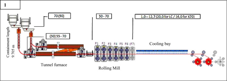 Hot strip mills in these days are either conventional hot strip mills or strip mills for rolling thin slabs. The primary function of the conventional hot strip mill (HSM) is to reheat the semi-finished steel slabs (rolled or continuously cast) to the rolling temperatures and then to roll them thinner and longer through a series of rolling mill stands driven by large motors and finally coiling up the lengthened steel sheet for its easy handling and transport. Coils are produced with an inside diameter of 750 mm on the coilers, with an outside diameter of up to 2400 mm and with the limitations of coil weight up to 220 kg per cm width. The hot strip mill supplies coils for cold rolling mill, strip shearing and slitting units as well as a finished product for shipment directly to the customers. Most material is transported out of the mill area by an automated coil handling system to the storage aisle.